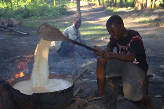 Making our gorgeous fish lunch in Lake Peligre.